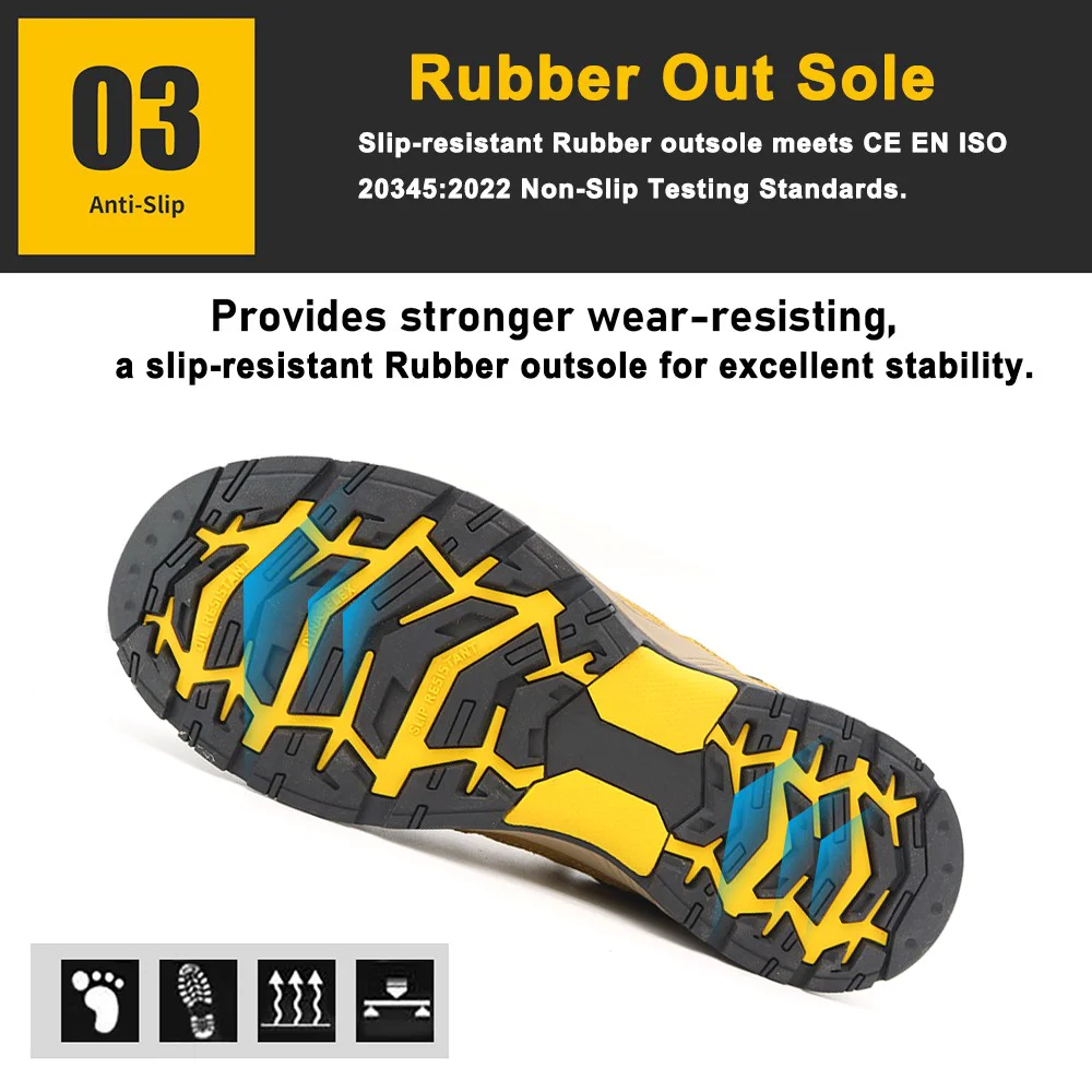 4. مطاط مقاوم للانزلاق يلتقي النعل الخارجي سي إي إن آيزو 20345:2022 معايير اختبار عدم الانزلاق.