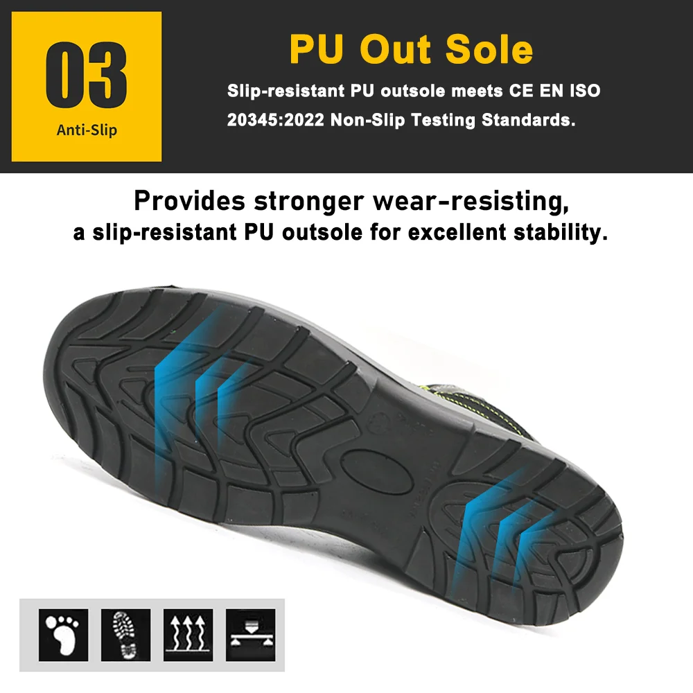 4。防滑的pu 外底面 CE EN ISO 20345:2022 防滑测试标准。