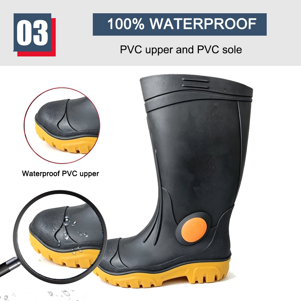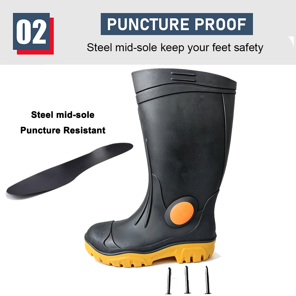 | Nom du produit : | Bottes de sécurité en PVC résistantes aux acides et aux alcalis, hautes, imperméables, à bout en acier, anti-perforation, pour hommes |