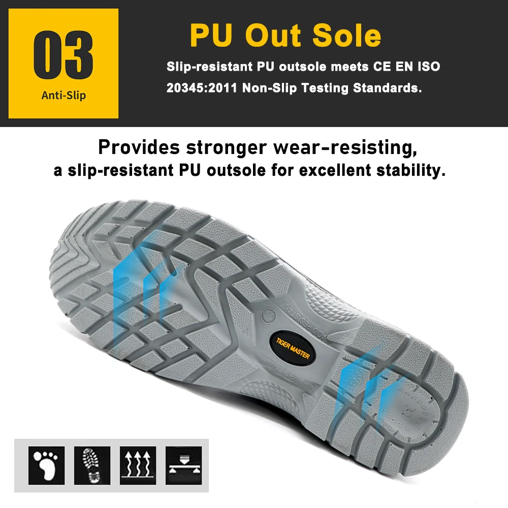 8. Les chaussures Tiger Master Safety sont utilisées pour les travailleurs afin d'empêcher les blessures de l'emploi. Votre sécurité est toujours notre préoccupation!