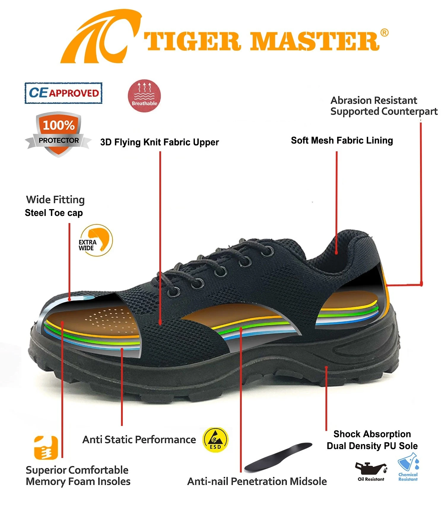 8. Les chaussures Tiger Master Safety sont utilisées pour les travailleurs afin d'empêcher les blessures de l'emploi. Votre sécurité est toujours notre préoccupation!