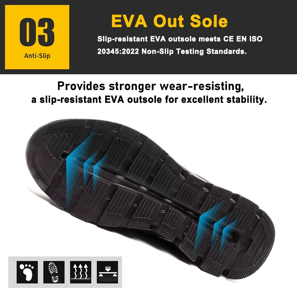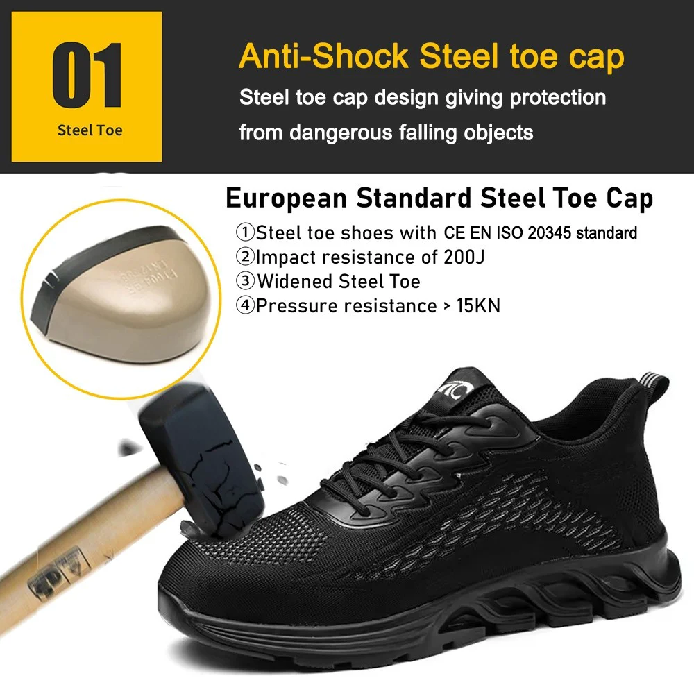 2。 スチールトゥキャップ&アラミド繊維ミッドソール それ 会う CE 標準 。 危険なく足のつま先を保護します。 爪や鋭利なもので穴を開けずに足を保護します。