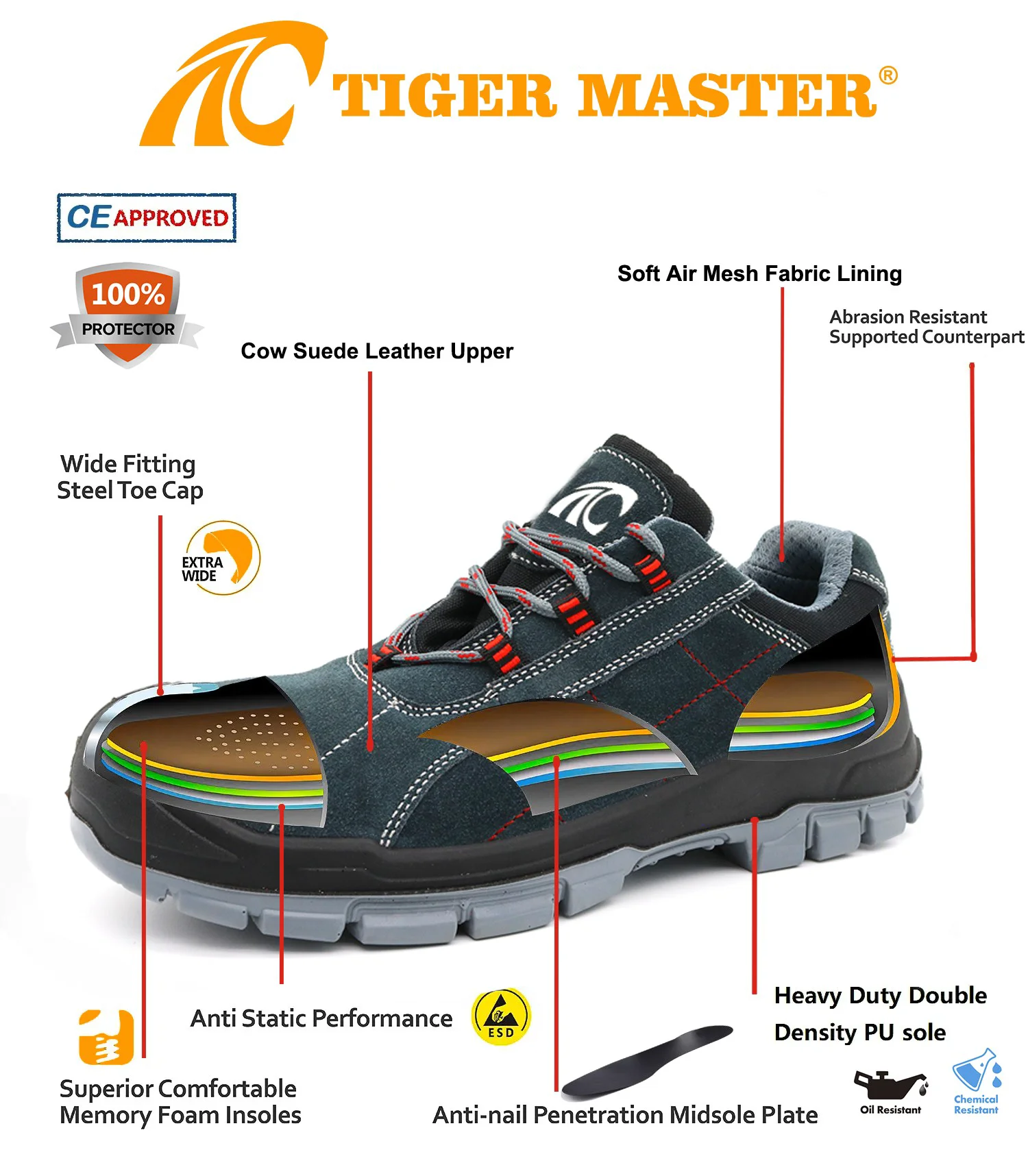 8. 타이거 마스터 안전화는 작업자가 작업 중 부상을 방지하기 위해 사용됩니다. 귀하의 안전은 항상 우리의 관심사입니다!