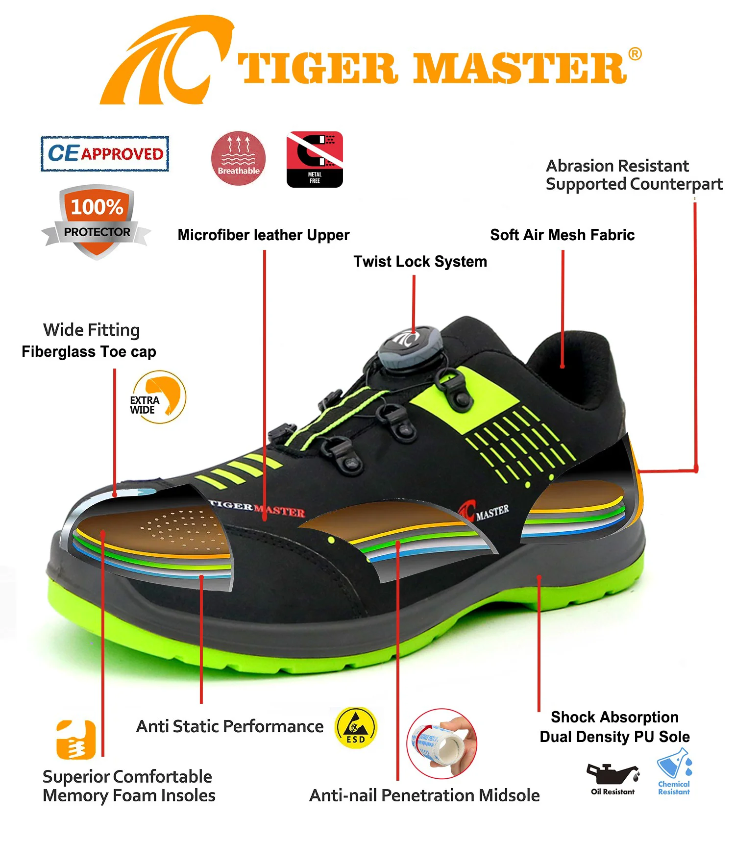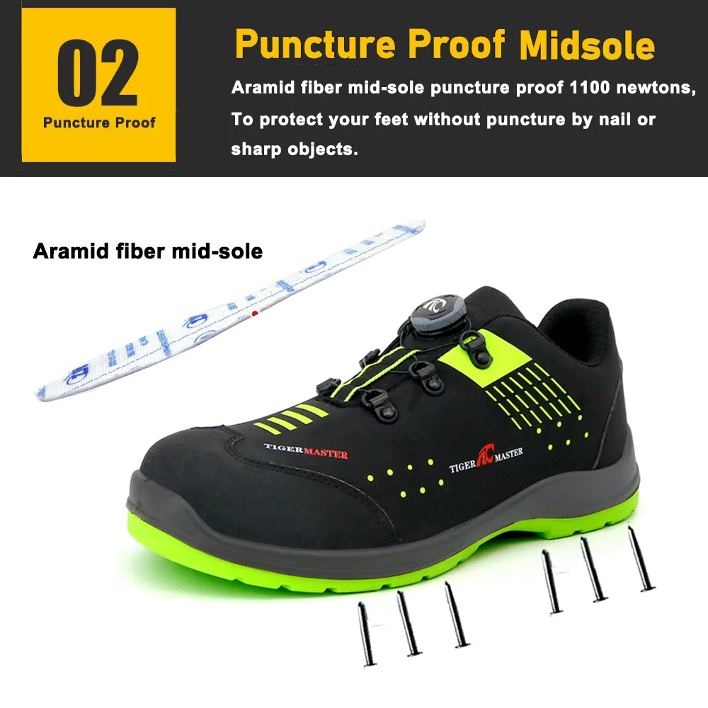 2. 유리섬유 토캡과 아라미드 섬유 미드솔 저것 충족 CE 표준 . 위험없이 발가락 발가락을 보호합니다. 못이나 날카로운 물체에 찔리지 않고 발을 보호합니다.
