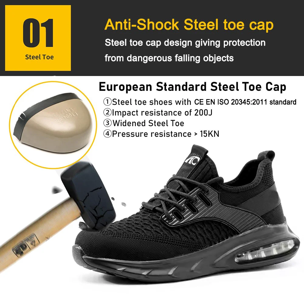 2. 스틸 토 캡과 아라미드 섬유 미드솔 저것 충족 CE 표준 . 위험없이 발가락 발가락을 보호합니다. 못이나 날카로운 물체에 찔리지 않고 발을 보호합니다.