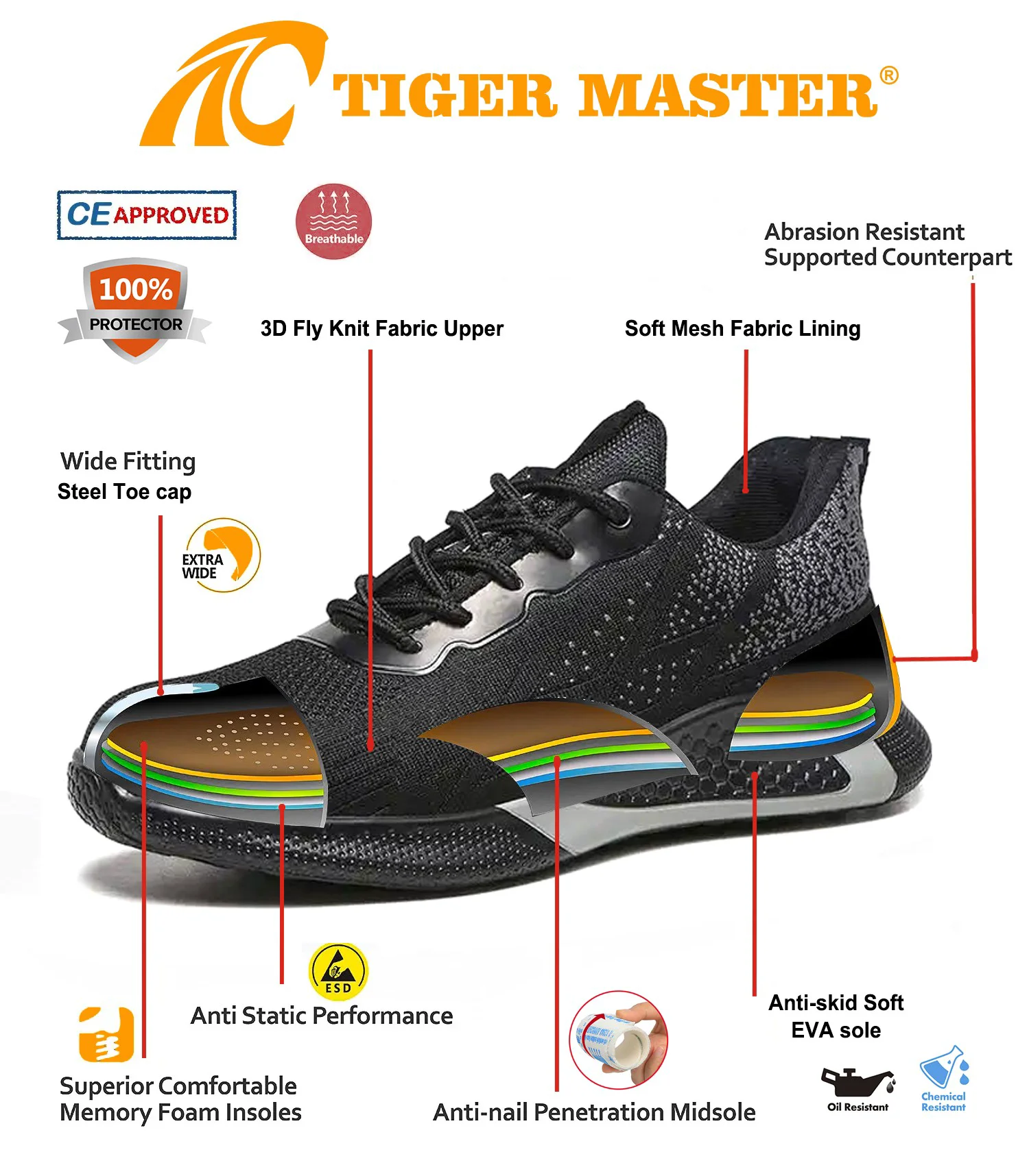 8. 타이거마스터 안전화는 근로자의 작업으로 인한 부상을 방지하기 위해 사용됩니다. 귀하의 안전은 항상 우리의 관심사입니다!