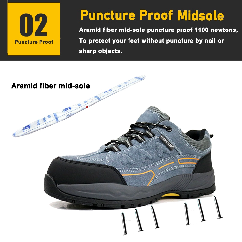 2. 스틸 토 캡과 아라미드 섬유 미드솔 그 충족 CE 표준 . 위험없이 발가락 발가락을 보호합니다. 못이나 날카로운 물체에 찔리지 않고 발을 보호합니다.