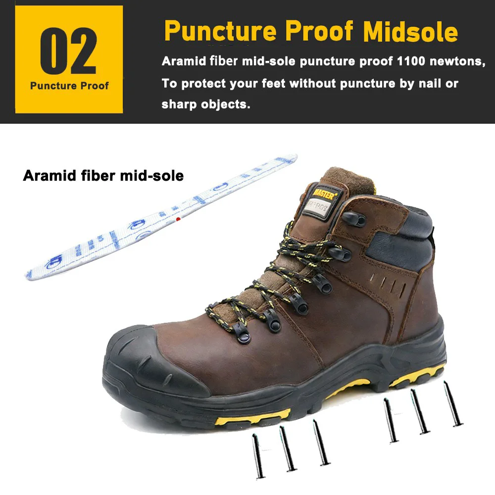 2. Glasvezelneus en middenzool van aramidevezel dat ontmoet CE normen . Om uw voeten teen zonder gevaar te beschermen. Ter bescherming van uw voeten zonder prikken door spijkers of scherpe voorwerpen.