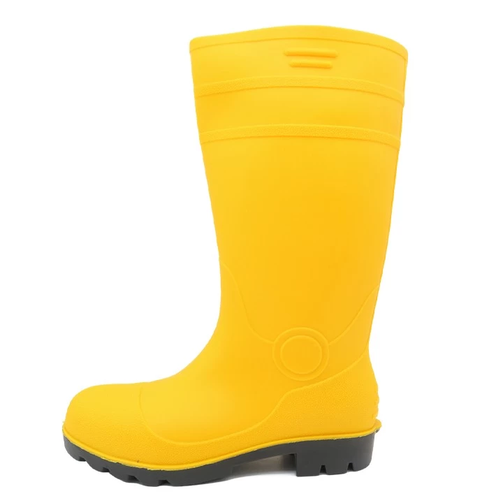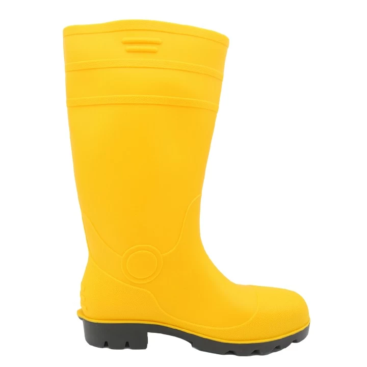1. Water / Acid / Alkali / oil / grease resistant, non-slip, anti-static pvc boots. 2. outsole is abrasion resistant and Contract. 3. Ankle protection, energy absorption on the heel seat region, strengthening toe and heel. 4. Steel toe cap to be impact resistant 200 joules. 5. Steel mid plate to be puncture resistant 1100 newtons. |