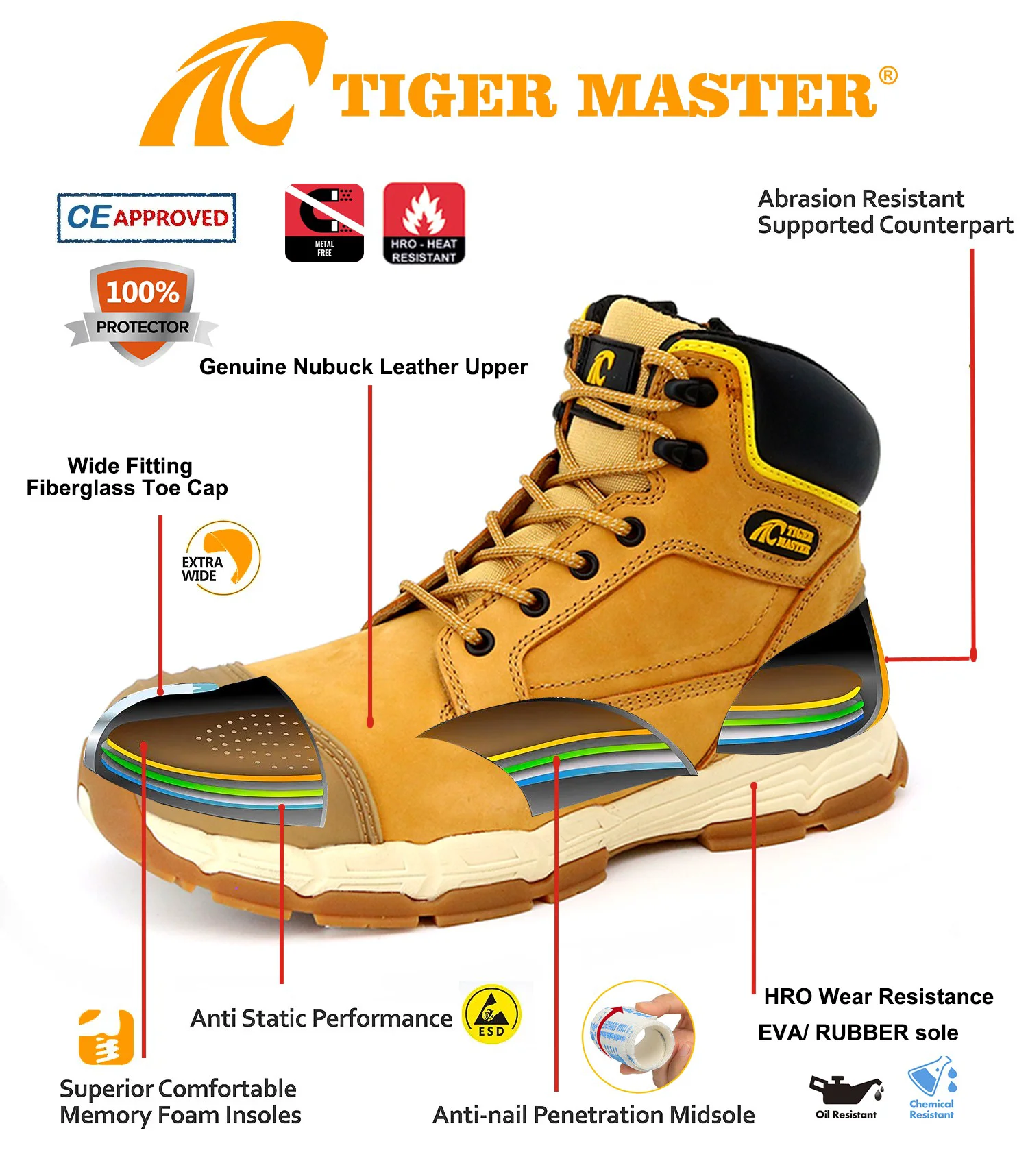 1. Get the job done right in the tiger master safety shoes. These lace-up safety shoes are moisture-wicking lining to help keep your feet dry and a slip resistant rubber sole for excellent stability.