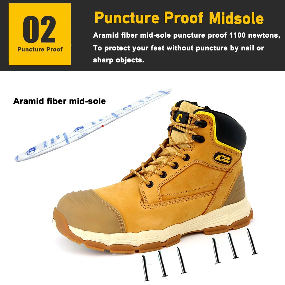 3. Toe cap & mid sole: Fiberglass toe & aramid fiber midsole