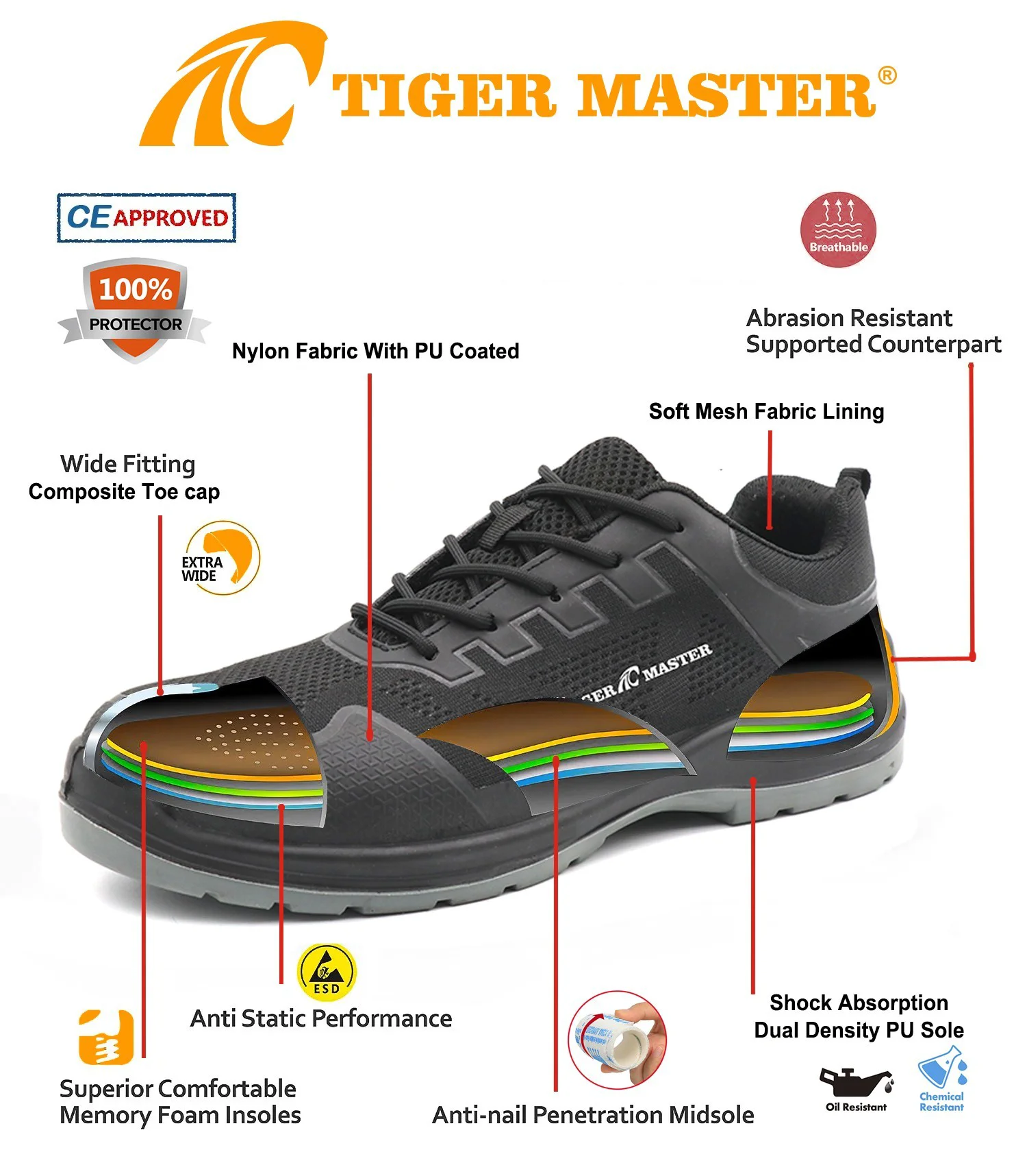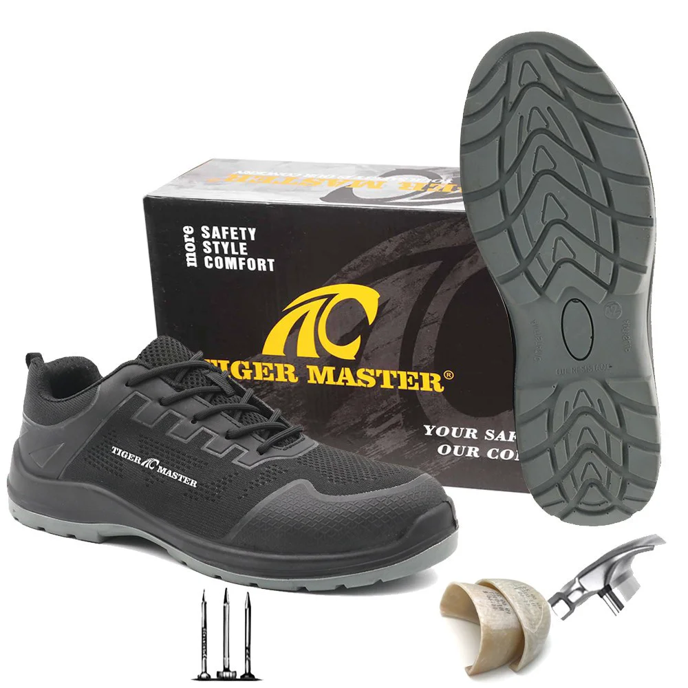 1. Get the job done right in the tiger master safety shoes. These lace-up safety shoes are moisture-wicking lining to help keep your feet dry and a slip resistant PU sole for excellent stability.