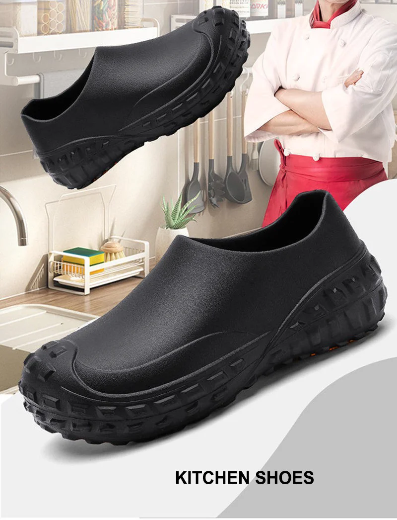 1. Get the job done right in the tiger master kithcen shoes. These no lace chef shoes are moisture-wicking lining to help keep your feet dry and a slip resistant EVA sole for excellent stability.