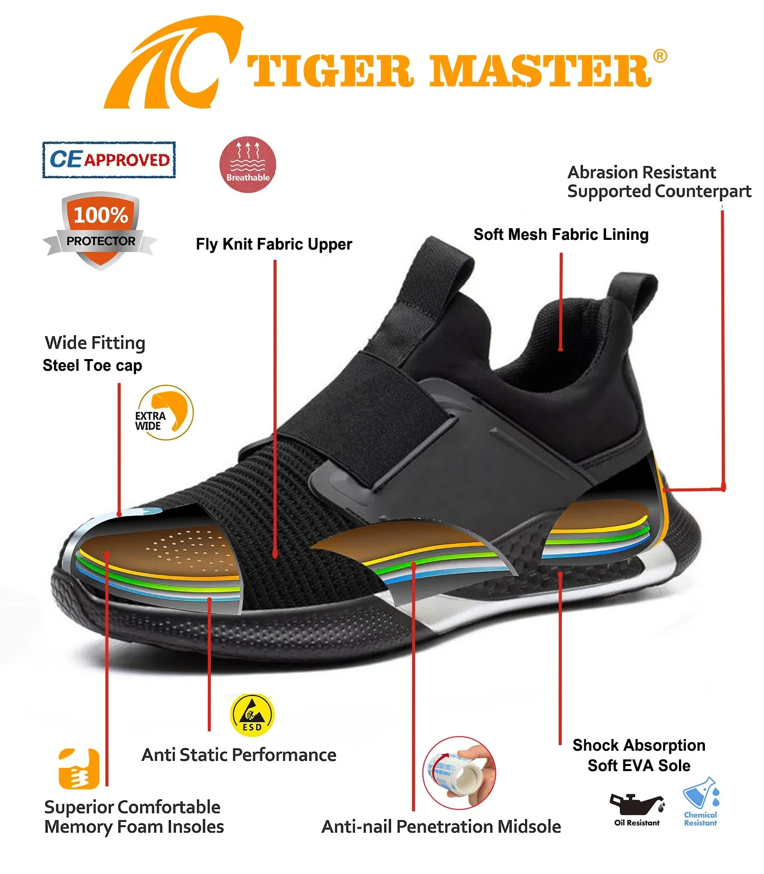 1. Get the job done right in the tiger master safety shoes. These lace-up safety shoes are moisture-wicking lining to help keep your feet dry and a slip resistant PU sole for excellent stability.
